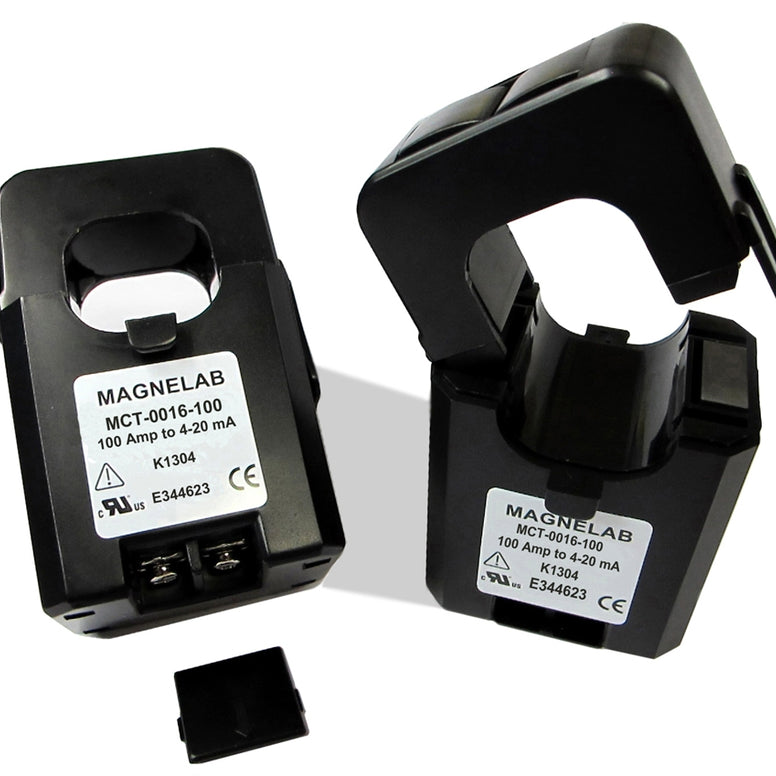 The Magnelab MCT-0016 was previously sold under the name MAG-J16M420 . It is a split core current sensor with a 16 mm opening and is able to transform 10 to 100 Amps of AC current input into an output of 4 to 20 mA DC current. A current transformer with 4-20 ma output like this one is perfect for electrical wiring installations that are already installed. This is because it comes with a self locking mechanism that allows it to simply be snapped around the existing conductor easily and safely.