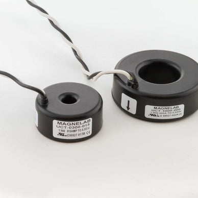 Magnelab UCT-0300 Solid-Core AC Current Sensor Series have better than one percent accuracy and less than one degree phase angle. Output is controlled by a precision resistor fixed at the industry standard of 0.333 Volt AC. The rugged epoxy encapsulated construction comes with eight feet twisted leads. The Magnelab UCT Current Sensor series are better than one percent accuracy and less than one degree phase angle. Output is controlled by a precision resistor fixed at the industry standard of 0.333 Volt AC. The rugged epoxy encapsulated construction comes with eight feet twisted leads.
