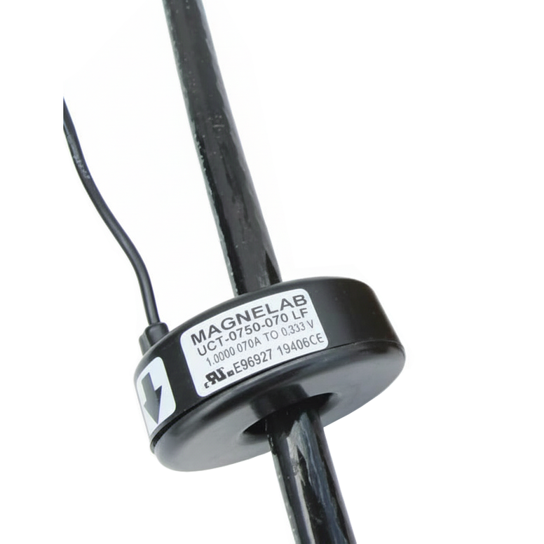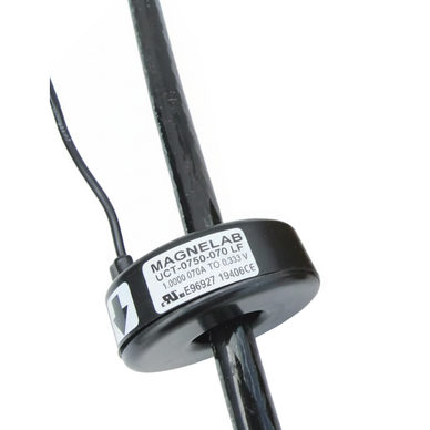 UCT-0750 Solid-Core AC Current Sensor models are better than one percent accuracy with less than one degree phase angle. Output is controlled by a precision resistor fixed at the industry standard of 0.333 Volt AC. The rugged epoxy encapsulated construction of this current sensor comes with eight feet twisted leads. Contact Magnelab for other ratings and customized designs. Revenue Grade version available with 0.5% linearity with less than 0.26° phase shift. Revenue Grade meets or exceeds IEC metering Class 0.5. See SPEC sheet for more details.